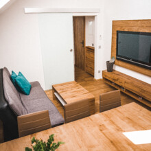 Apartment 2 Litovel is fully equipped and offers accommodation for 2–4 guests. 2 guests can sleep on a large bed in the bedroom, and 2 guests on a sofa bed in the living room.